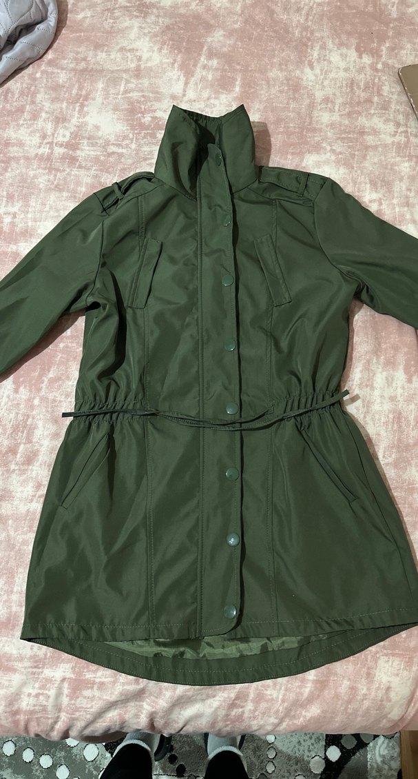Kadınlar için parlak yeşil renkte, kemerli ve bol kesim midi uzunluğunda ceket. Notlu yaka ve askılı kollara sahip, sokak stili ve dış mekan kullanımı için uygun. Sentetik kumaştan üretilmiştir.