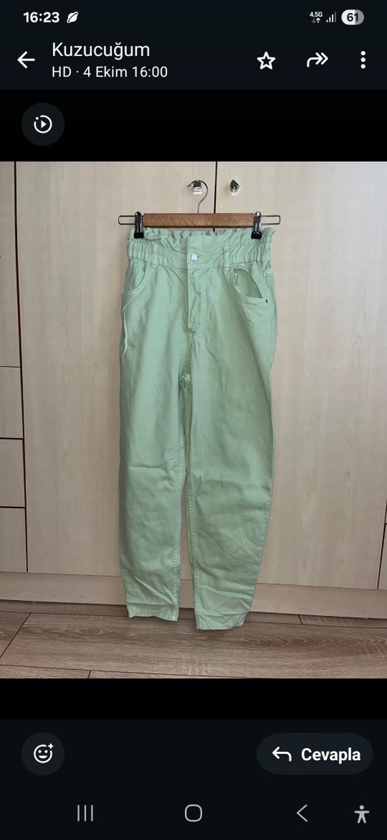 Kemerli ve salaş kesim yeşil keten pantolon, günlük rahat sokak stili için uygun.