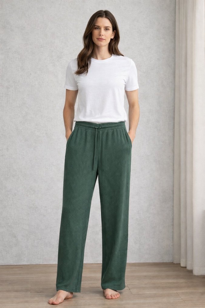 Kadın Yeşil Keten Rahat Kesim Pantolon