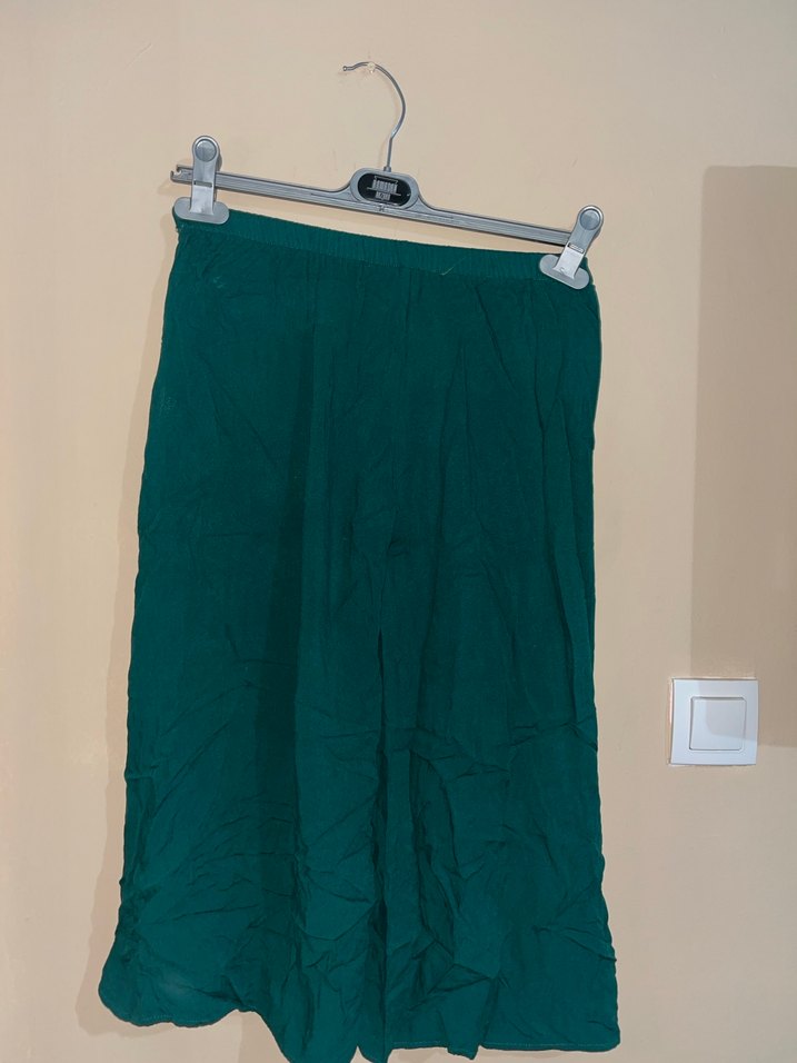 Kadın Yeşil Keten Uzun Drapeli Etek