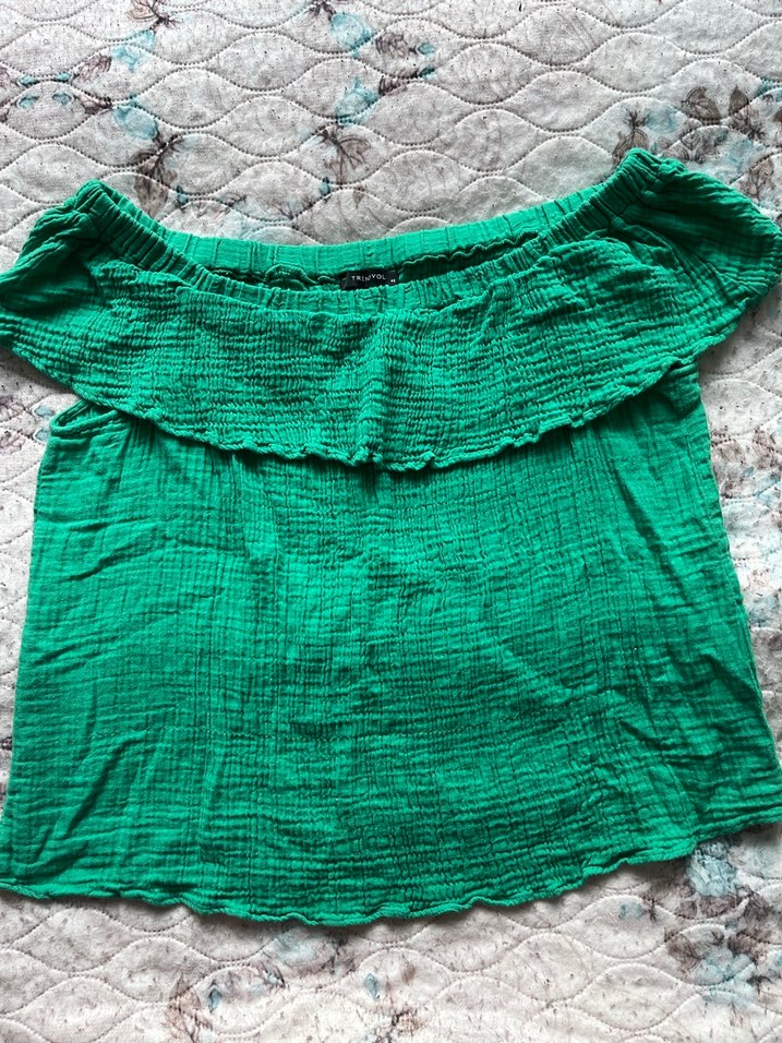 Kadın kısa kollu yeşil bluz. Az kullanıldı.