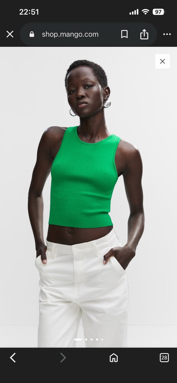 Kolsuz, yeşil crop top, fitted kesim ve yuvarlak yaka ile. Pürüzsüz sentetik kumaştan, günlük rahat stil için uygun.