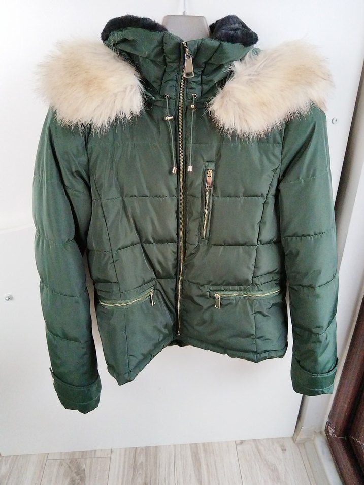 Yeşil, kürklü kapüşonlu ve notched lapel yakalı, fitted kesim kışlık mont. Yumuşak ve sıcak fleece kumaştan, midi boyda, desen içermeyen rahat bir sokak stili monttur. ❄️