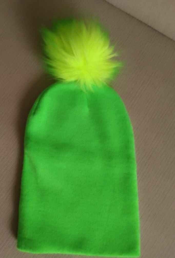 Yeşil kadın bere, yumuşak ve sıcak kumaşlı, renkli kürklü ponpon detaylı. Rahat ve sade tarzda.
