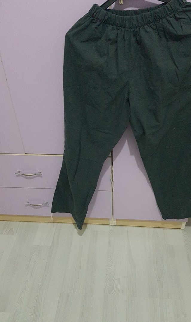 Kadınlar için yeşil renkli, rahat kesim midi boy kumaş pantolon. Düz desensiz, günlük kullanıma uygun ve kolay şıklık sağlar.