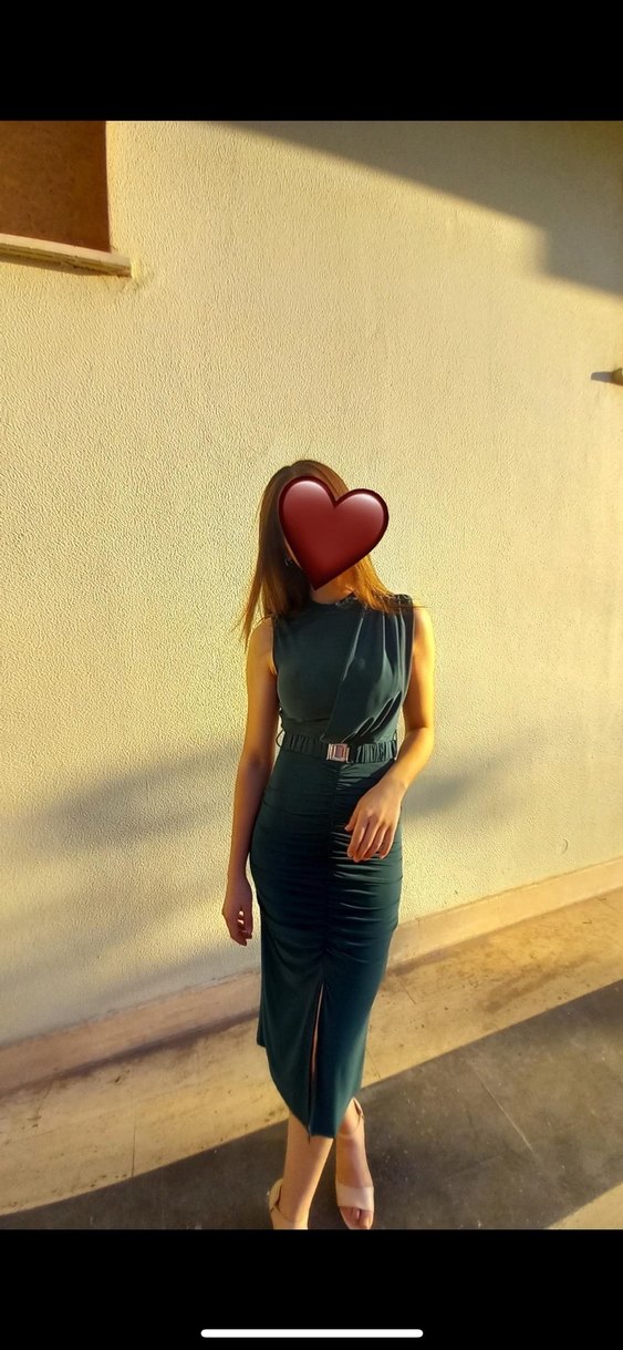 Kadın yeşil Midi Kemerli Straplez Elbise