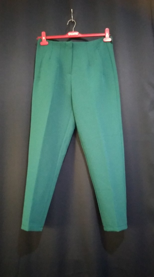 Ofis için uygun, koyu yeşil renkte, regular fit ve midi boyda kumaş pantolon. Sentetik kumaştan üretilmiş, sade ve desensiz, rahat ve şık bir görünüm sunar.