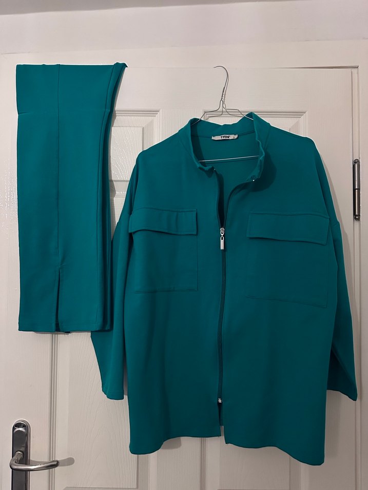 Kadın Yeşil Midi Takım Fermuarlı Ceket