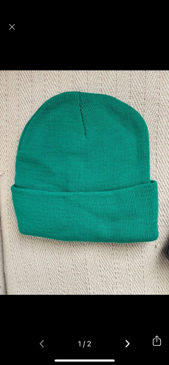 Kadınlar için yeşil renkli, örgü kumaştan yapılmış, sade ve rahat bir bere. Katlanabilir kenarıyla temel bir karşıt kültür tarzı sunar.