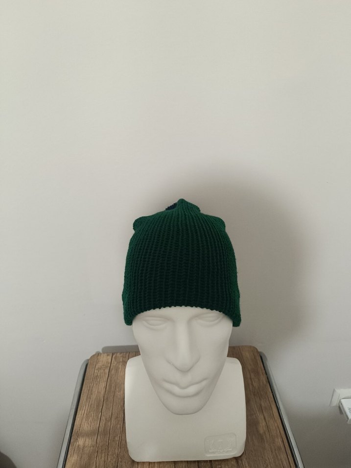 Kadınlar için koyu yeşil örgü bere, minimalist ve sade bir tarza sahiptir. Temel ve düz bir görünüm sunar.