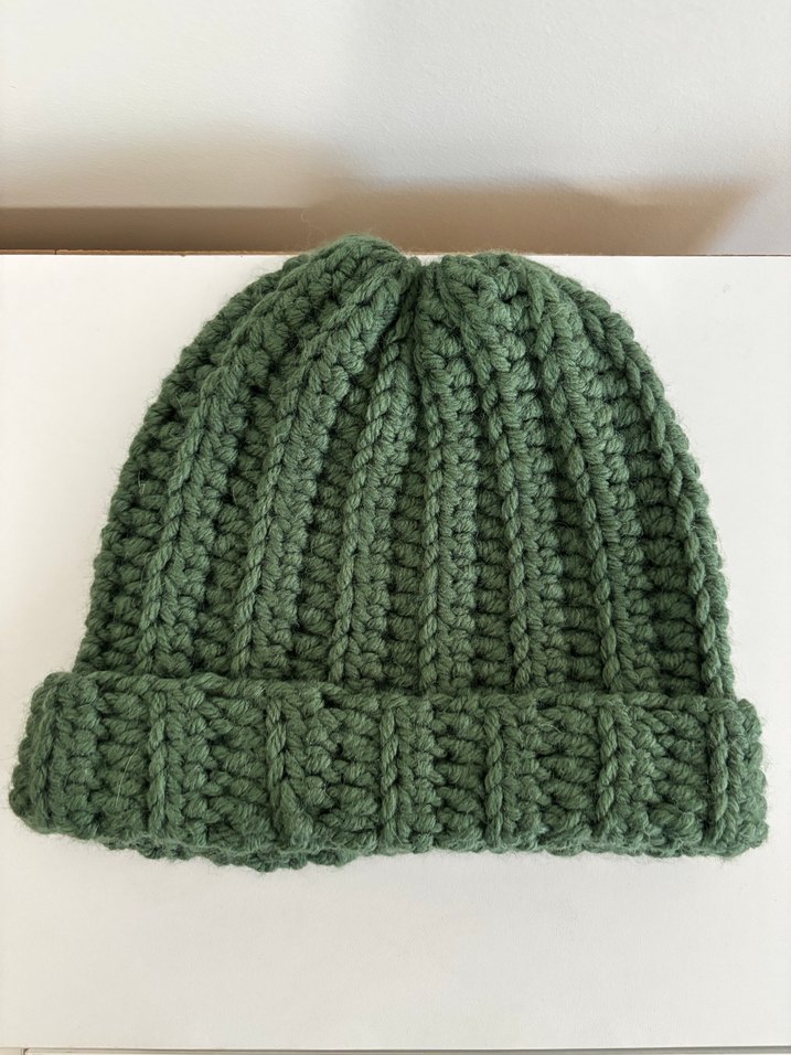 Kadınlar için yeşil renkte, yumuşak iplikle örülmüş, sade ve rahat katlanabilir kenarlı bere. Marka temsili
