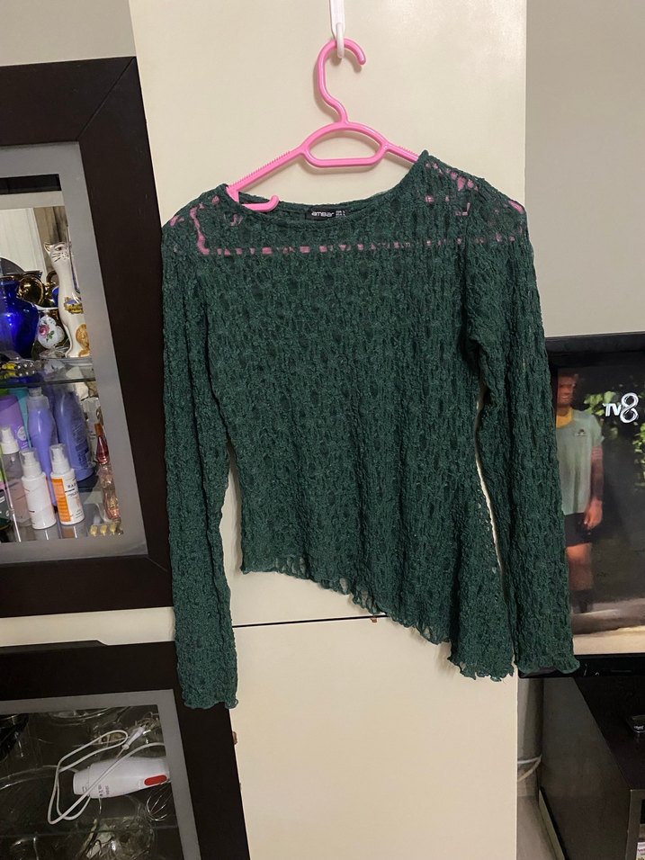 Kadın Yeşil Örgü Uzun Kollu Bluz