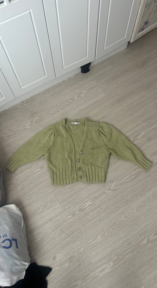 Yeşil renkli, V yakalı uzun kollu örgü hırka. Rahat kesimi ve midi boyu ile gündelik kullanıma uygundur.