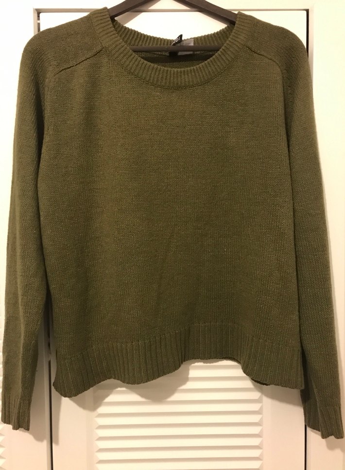 Kadın yeşil örgü yün kazak, yuvarlak yaka ve uzun kolludur. Rahat kesimi ve normal boyu ile günlük kullanıma uygundur. Düz, sade tasarımıyla konforlu bir modeldir.