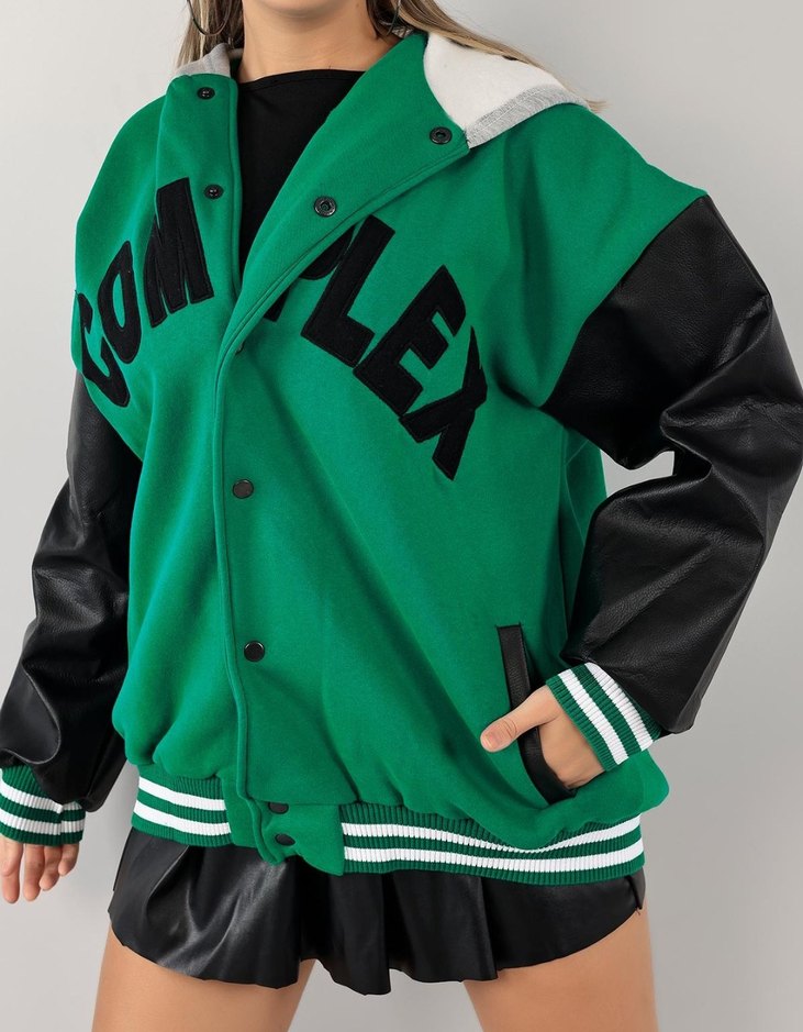 Kadın Yeşil Oversize Kolej Ceket