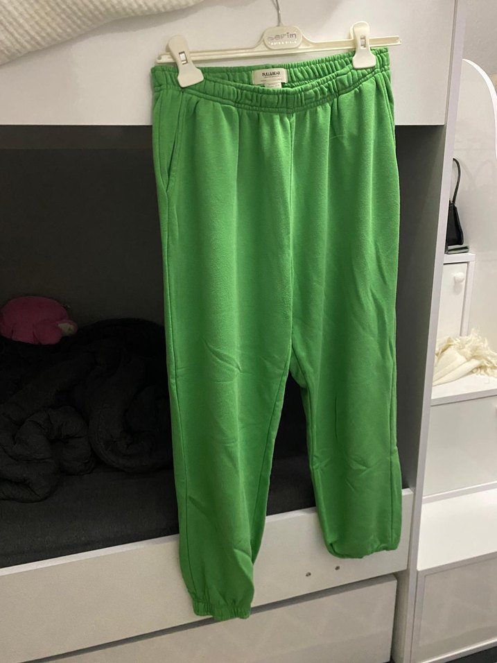 Koyu yeşil, rahat kesim ve midi boyda kadın eşofman altı, yumuşak sentetik kumaştan, spor ve günlük sokak stili için uygun. ♀️