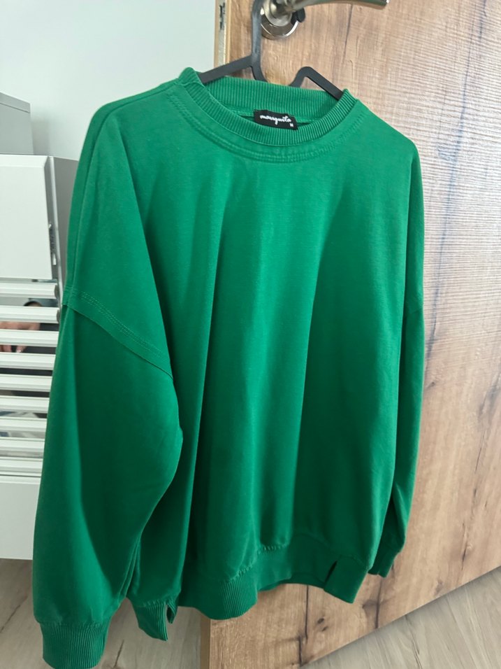Kadınlar için koyu yeşil, yuvarlak yakalı ve uzun kollu salaş kesim sweatshirt. Yumuşak ve sıcak kumaştan, günlük rahat kullanım için uygundur.