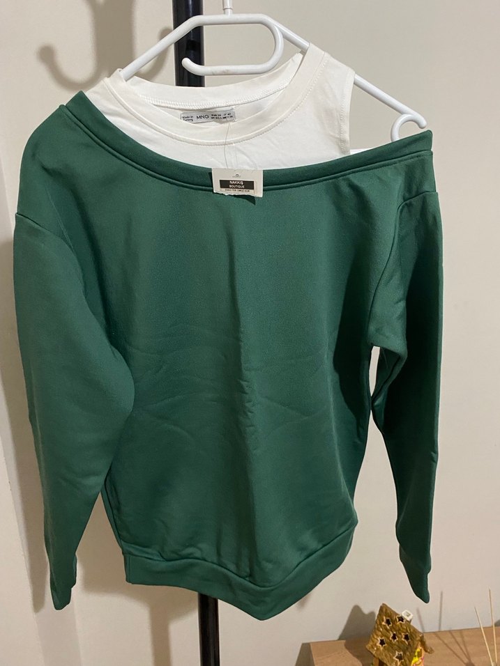 Kadınlar için yuvarlak yaka, uzun kollu, salaş kesim yeşil sweatshirt. Yumuşak ve sıcak kumaştan yapılmıştır. Rahat sokak stili için uygundur.