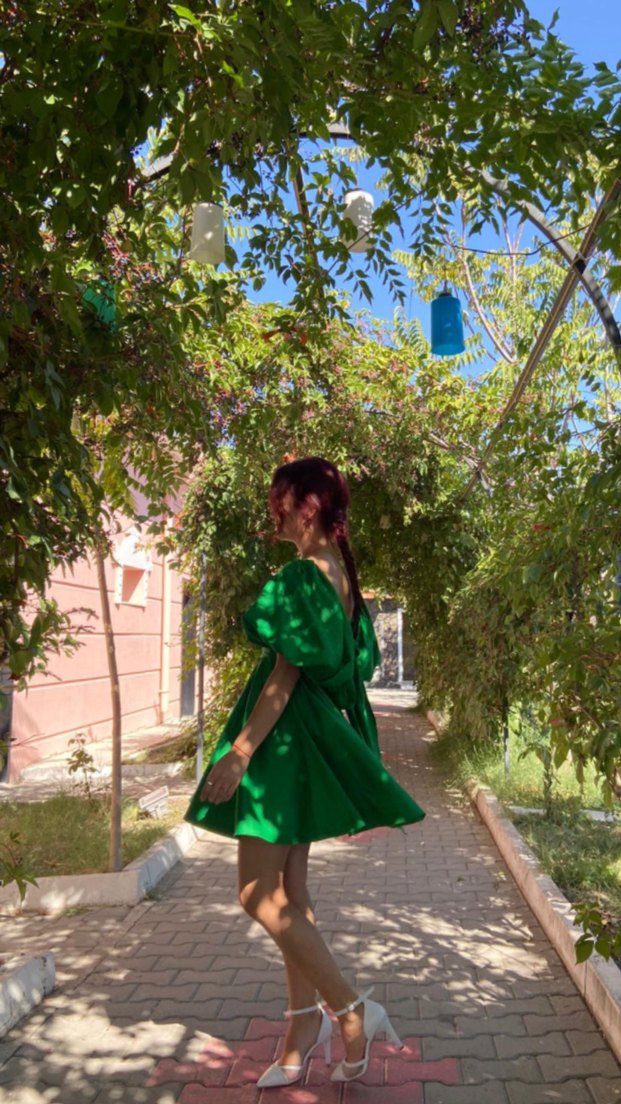 Kadın Yeşil Sırt Dekolteli Elbise