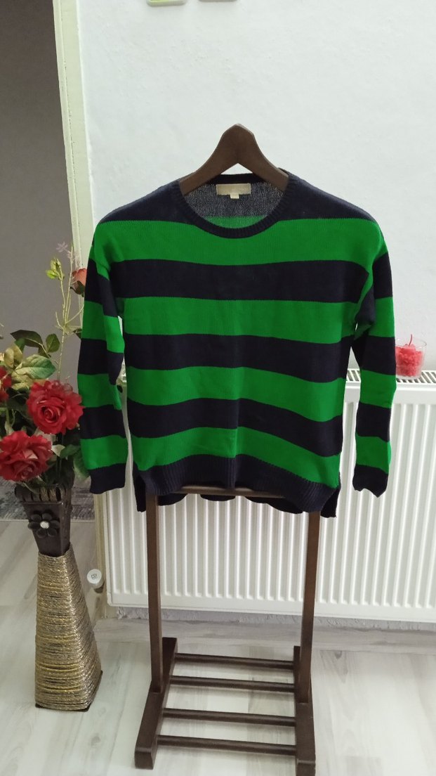 Kadın Yeşil Siyah Çizgili Triko Kazak