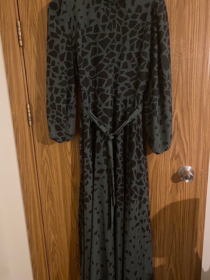 Kadın yeşil siyah Yılan Desenli Uzun Elbise