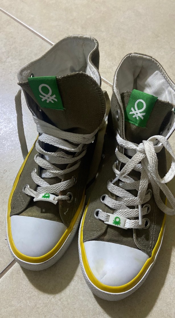 Kadın spor ayakkabılar, yeşil ve gri tonlarda, düz tabanlı kauçuk malzemeden ve velcro detaylıdır. Spor ve sokak stiline uygundur.