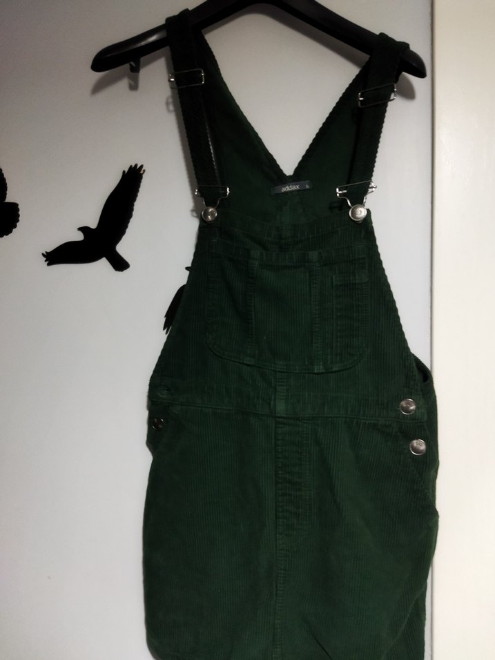 Yeşil renkli, süet kumaştan yapılmış, askılı ve kemerli midi boy kadın salopet. Halter yakalı, sokak tarzı için uygun. 1 kez giyildi temiz saglam hiçbir sıkıntısı yoktur