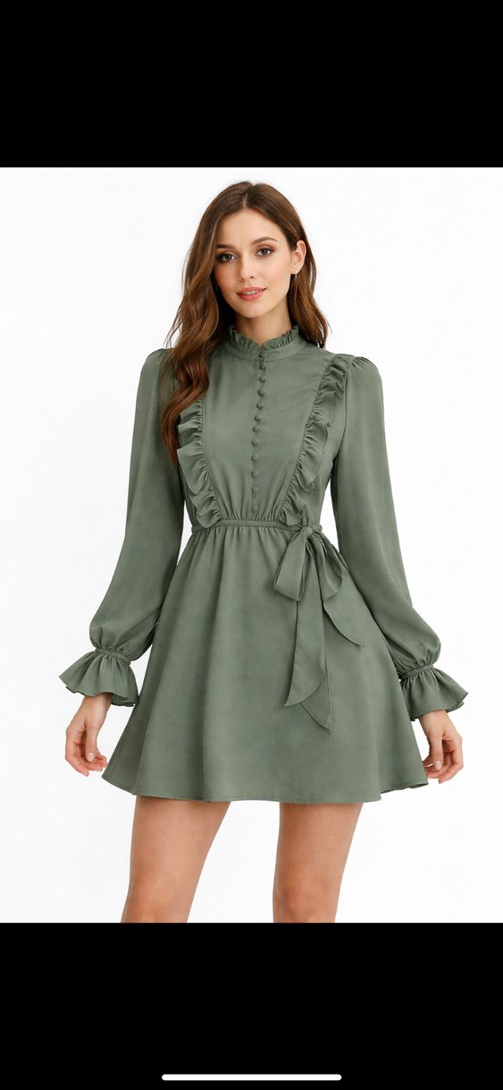 Kadın yeşil tunik kolları fırfırlı