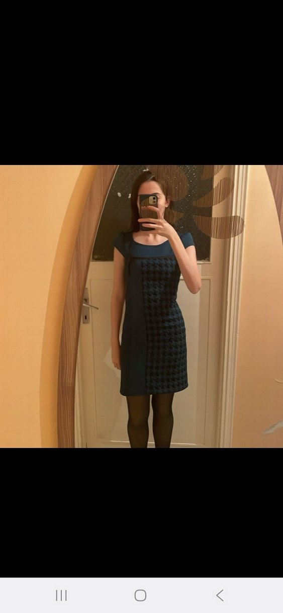 Yüksek yakalı, kolsuz ve kareli desene sahip yeşil midi kalem elbise, doğru bir kombinle ofiste de giyilebilir, arkadaşının nişan-sözünde de :) zahmetsiz şık olmak isteyenlere göre! kalıbı biraz dar, s bedene de uygun olabilir.