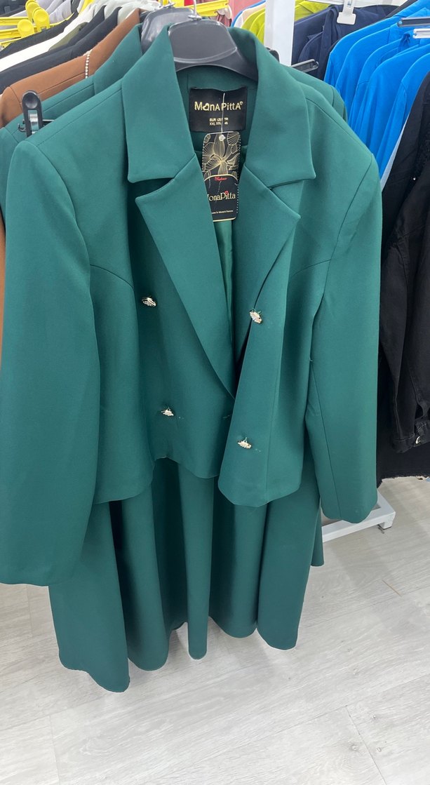 Kadın Yeşil Uzun Kesim Düğmeli ETEK VE CEKET SÜPER FİYAT