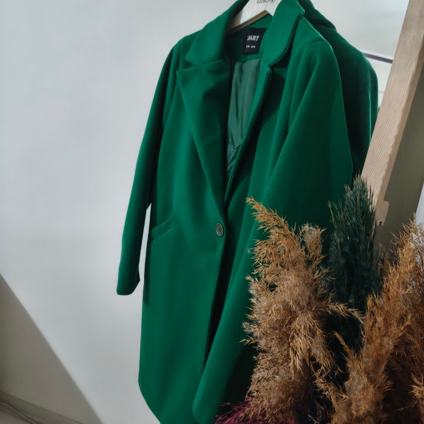 Kadın yeşil uzun kollu palto, yakasında kürk detayları ve klasik yaka ile rahat kesime sahiptir. Günlük kullanıma uygundur. 36-38 uyumlu bir kere giyildi daha çok yeni
