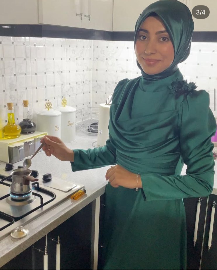 Kadın yeşil uzun boy, Saten elbise, yüksek yaka ve uzun kollu. Drapeli tasarımı ve baskılı deseniyle ofis için uygun, mütevazı ve klasik stile sahip. Sadece istememde giydim. Çok rahat ve kaliteli bir elbise.