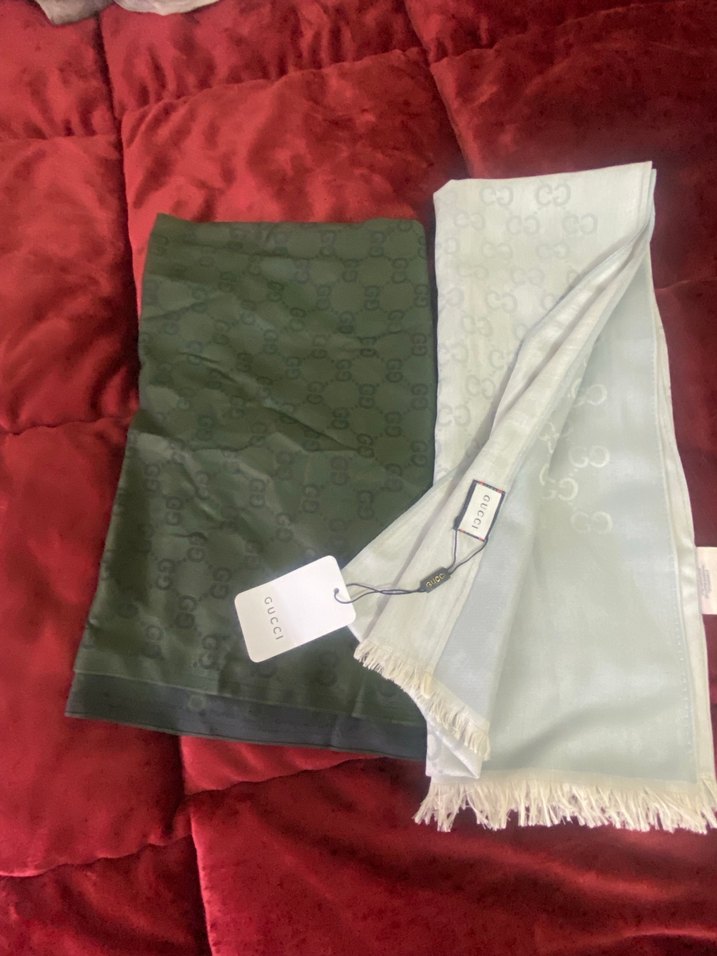 Kadın Yeşil ve Gri İpek Görünümlü Şal