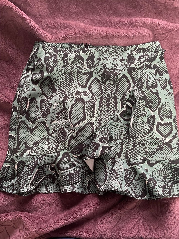 Kadın Yılan Desenli Fırfırlı Mini Etek