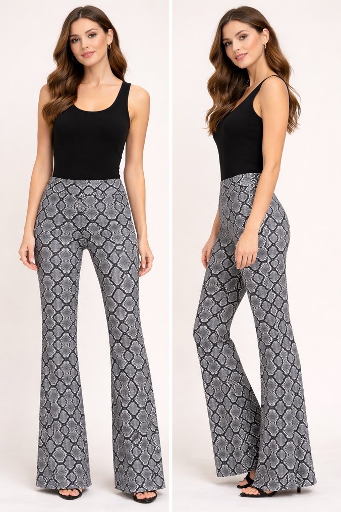 Kadın Yılan Desenli İspanyol Paça Pantolon