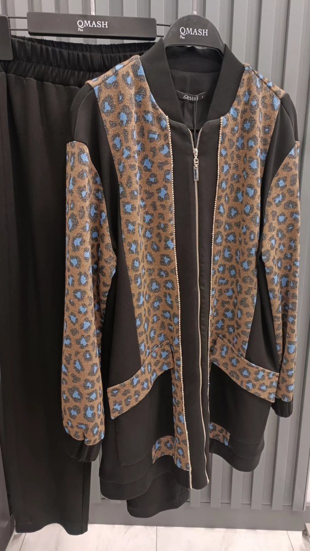 Kadın Yılan Desenli Uzun Fermuarlı Ceketli alt üst takım