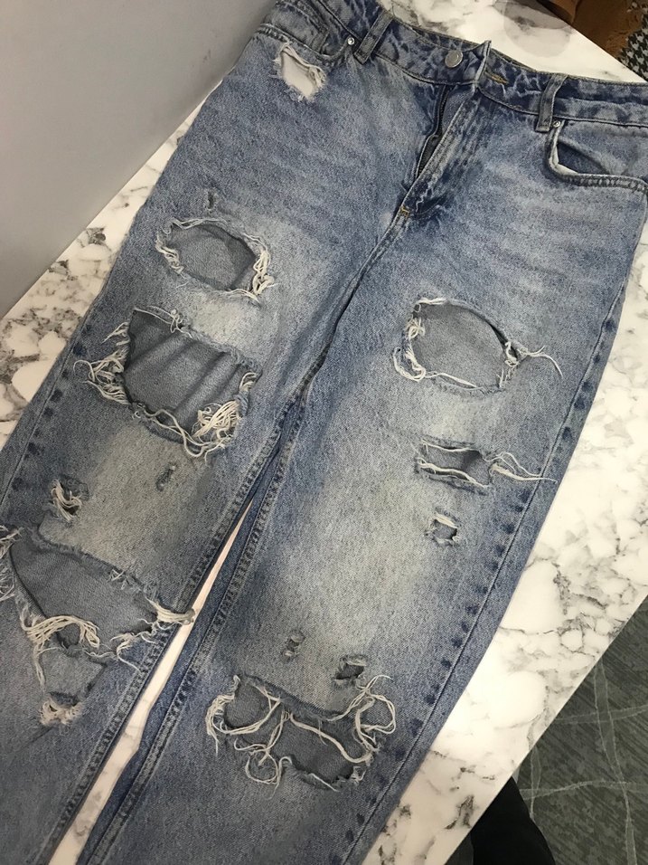 Kadın Yırtık Bol Kesim Kot Pantolon