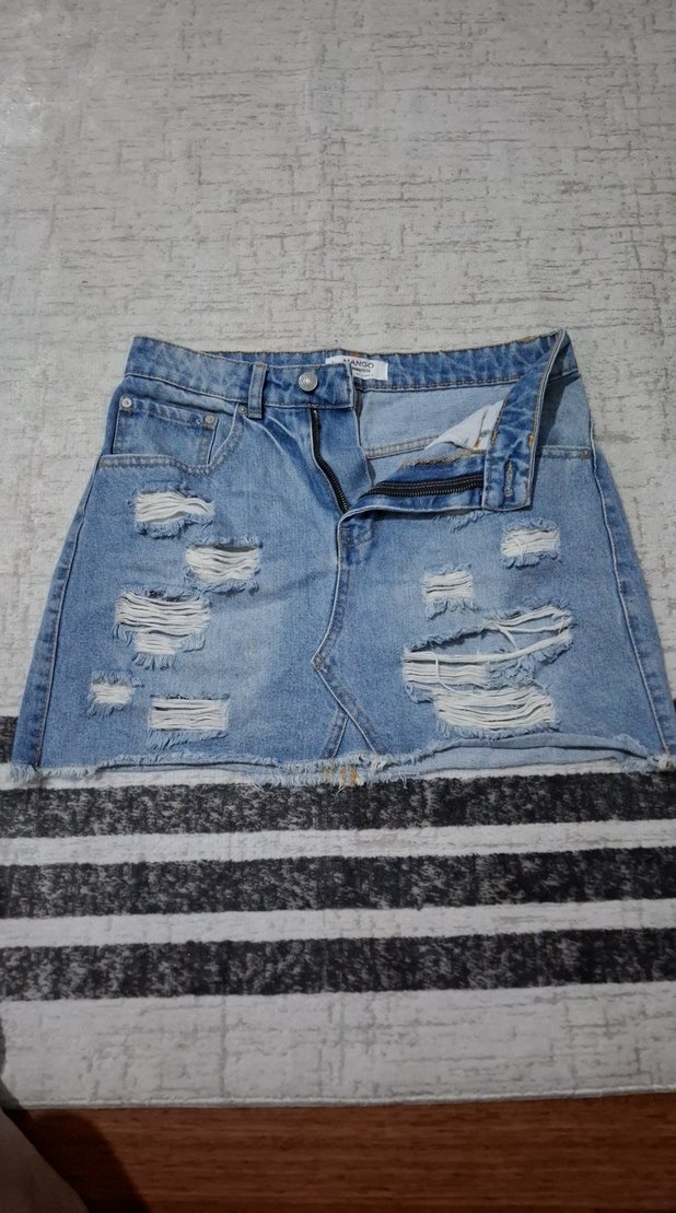 Kadın Yırtık Mini Denim Etek