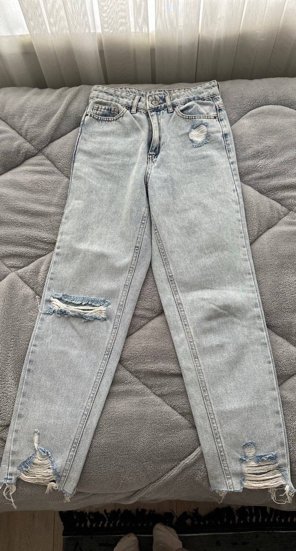 kadın yırtık pantolon mom jean
