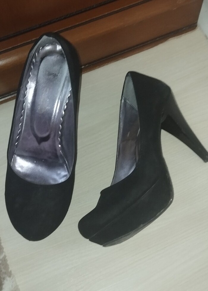 Kadın yüksek platform topuklu ayakkabı hakiki deri siyah süet