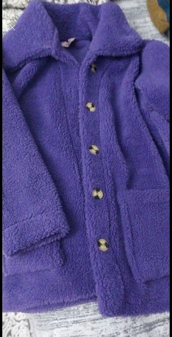 Düğmeli yakalı mor yumuş kaban