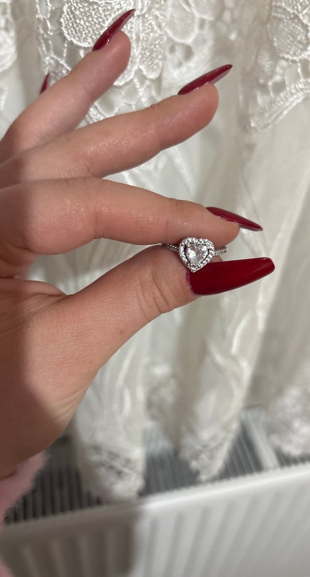 Parlak kalp şeklinde taş ve payet detaylarıyla beyaz kadın yüzük, klasik ve gotik tarzda romantik geceler için uygundur. ❤️ 925 ayar gümüştür