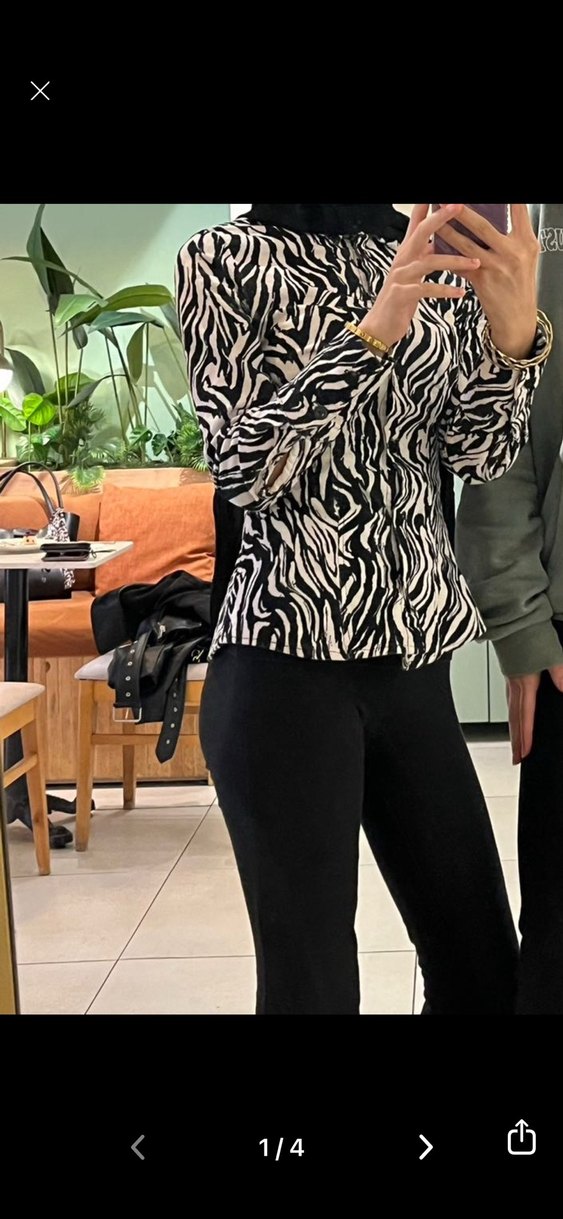 Kadınlar için zebra desenli, kadife kumaştan yapılmış, uzun kollu ve normal midi boyda, dar kesim gömlek.