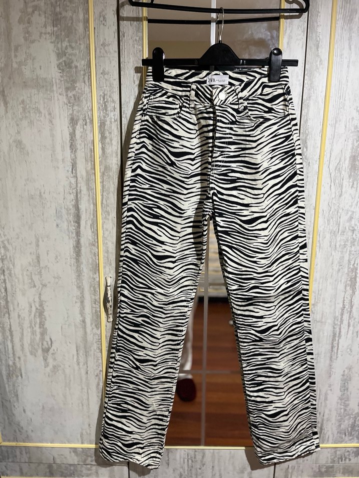 Kadın Zebra Desenli Kemerli Kumaş Pantolon