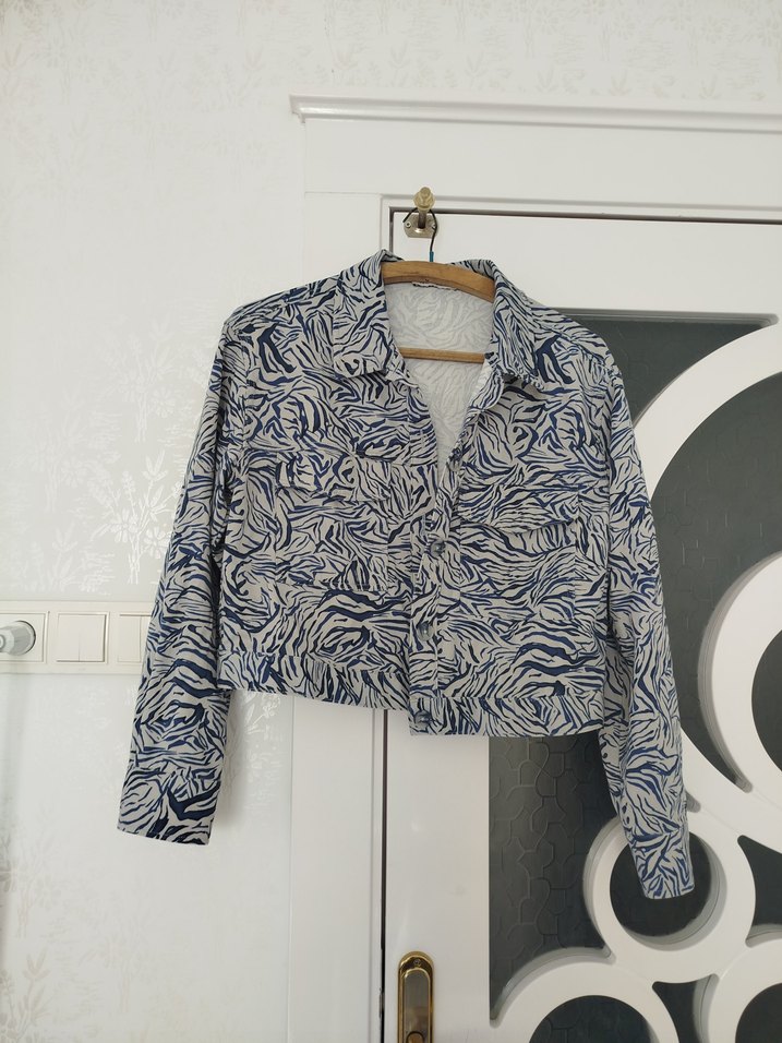 Kadınlar için zebra desenli kot ceket. Uzun kollu, yakalı ve düğmeli ön kısmı vardır. Kısa ve regular fit kesim, günlük kullanım için uygundur.