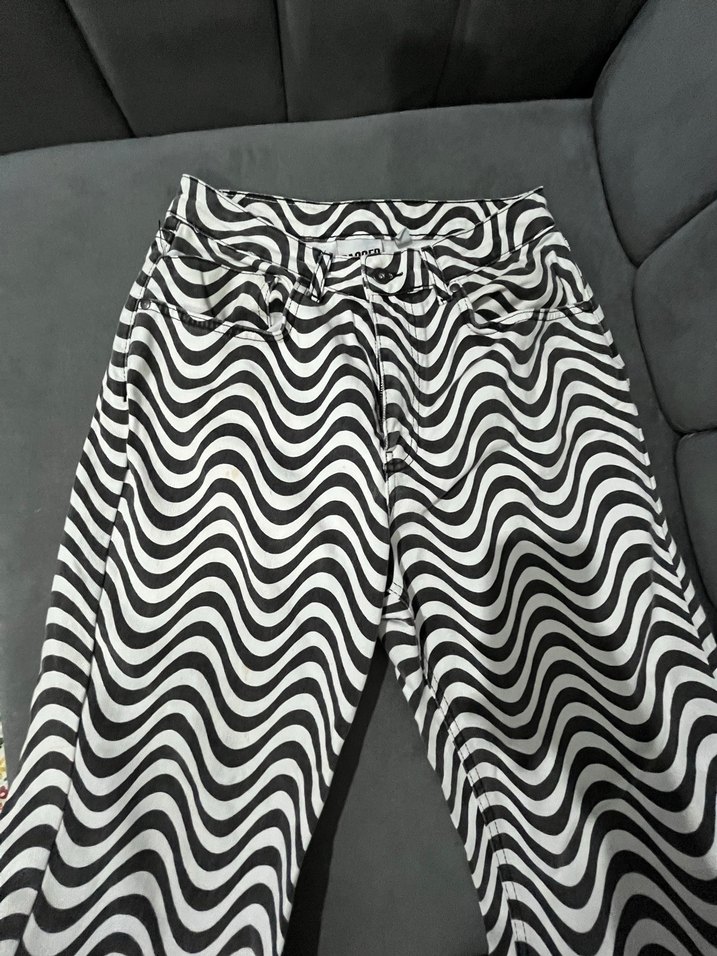 Kadınlar için zebra desenli, pliseli, bol kesim midi pantolon. Sentetik kumaştan üretilmiş, sokak tarzı ve açık hava kullanımı için uygundur.