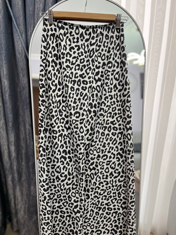 Kadın Zebra Desenli Uzun Saten Etek
