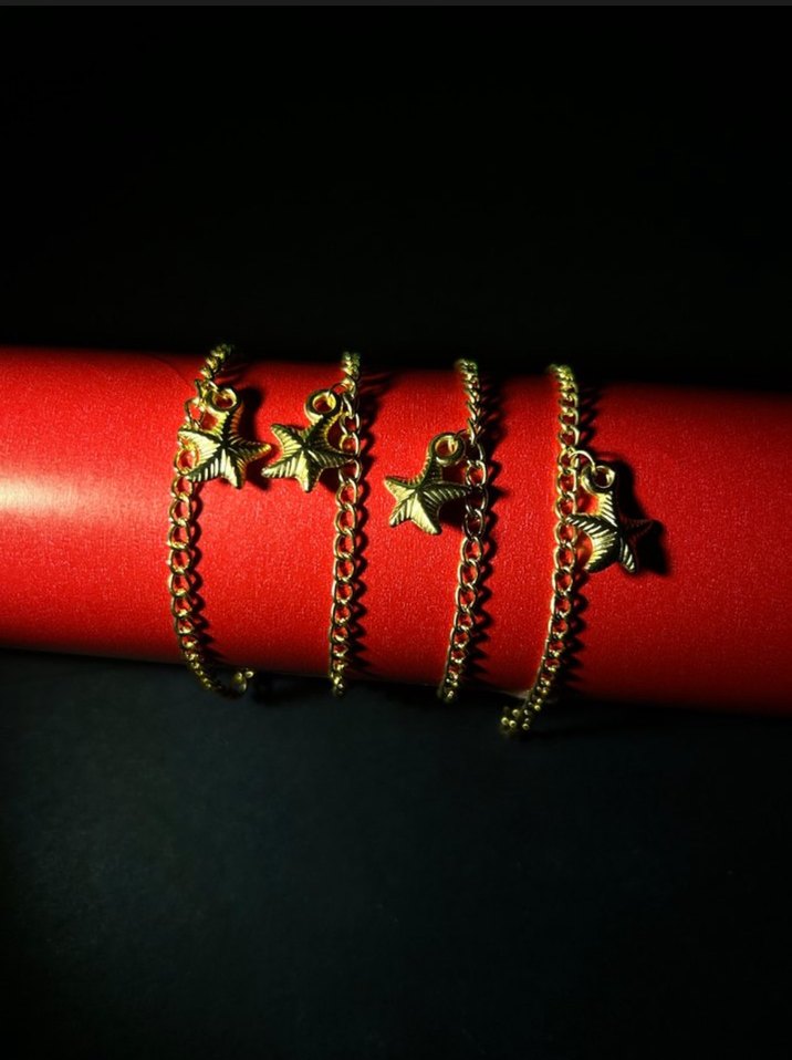 Altın zincir bileklikler, nakış görünümlü yıldız figürlü detaylarla✨