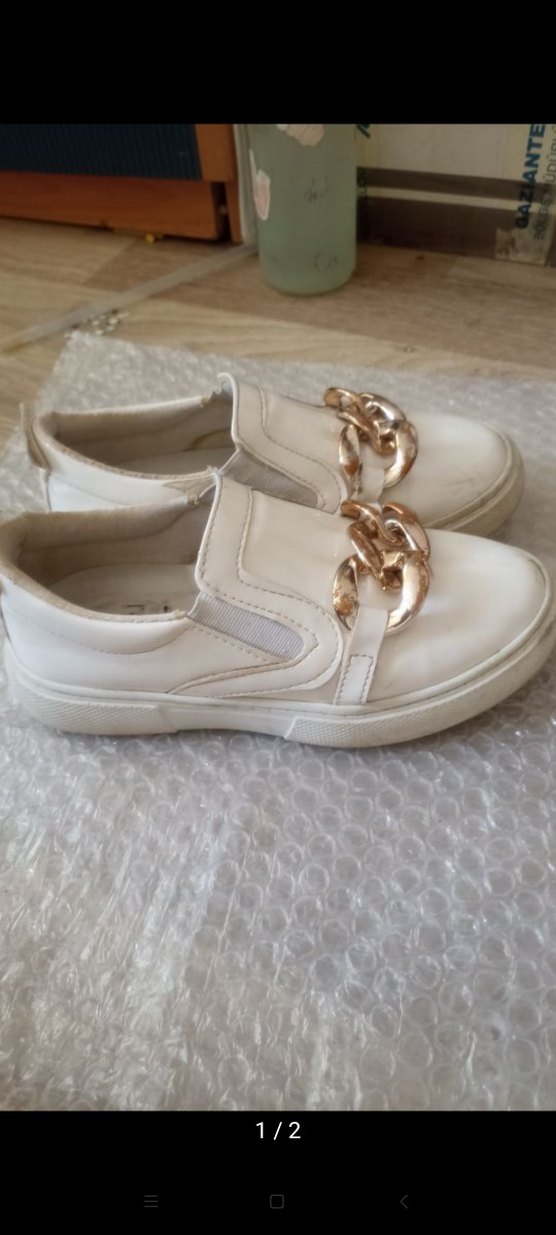Kadın Zincir Detaylı Beyaz Spor Ayakkabı