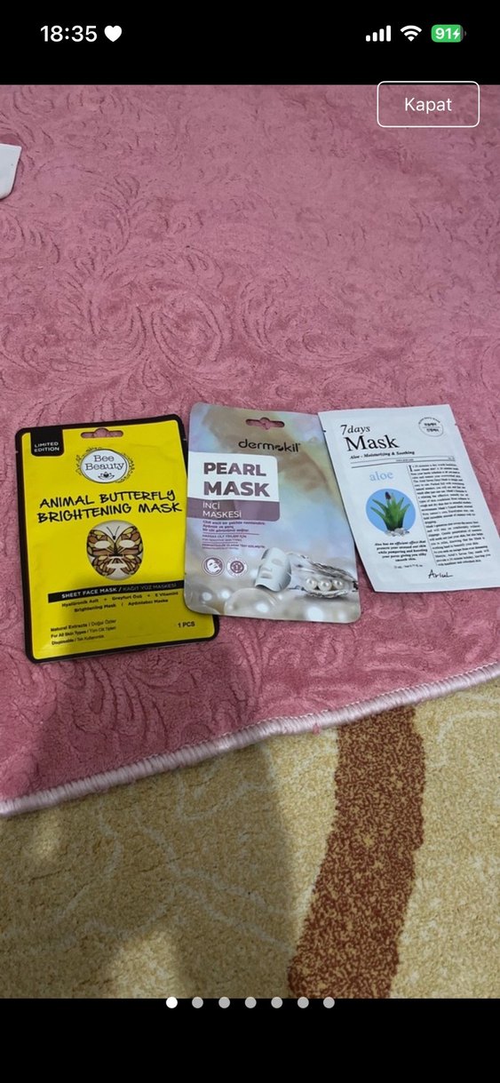 Bu set, cilt bakımı için aydınlatıcı hayvan kelebek maskesi, inci maskesi ve 7 günlük aloe maskesinden oluşur.
